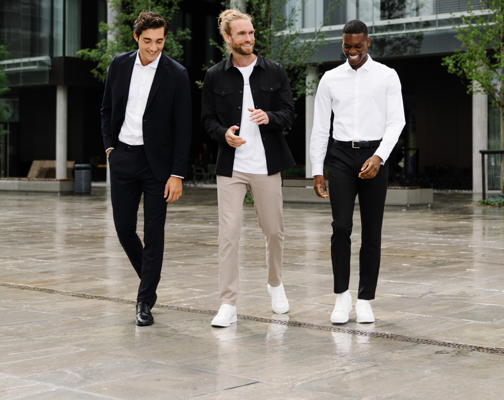 Vi vill göra det enkelt för dig att klä dig snyggt, oavsett tillfälle. Därför är våra kläder designade för att vara mångsidiga och superenkla att styla, oavsett vad du hittar på. Ska du iväg? Ta på dig en av våra stilfulla, slitstarka och vattenavvisande Essential Suits. Ska du klä dig för en dag på kontoret – varför inte en skjorta som nästan är helt skrynkelfri?