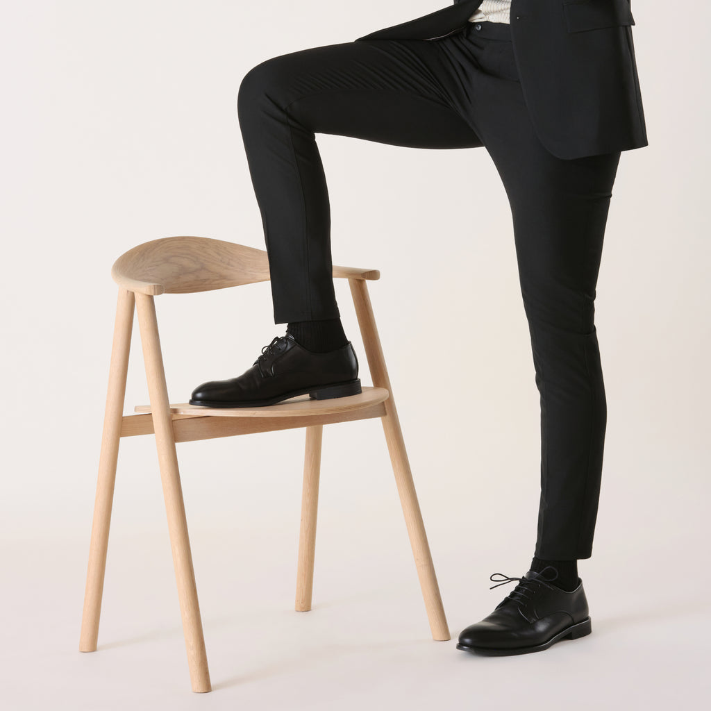 Våra Essential Suit Pants finns i slim fit och regular fit. Den smala passformen har en tightare passform i sin helhet meda regular fit är lite rymligare runt lår och vader.