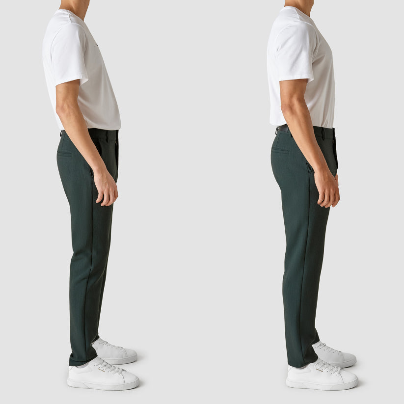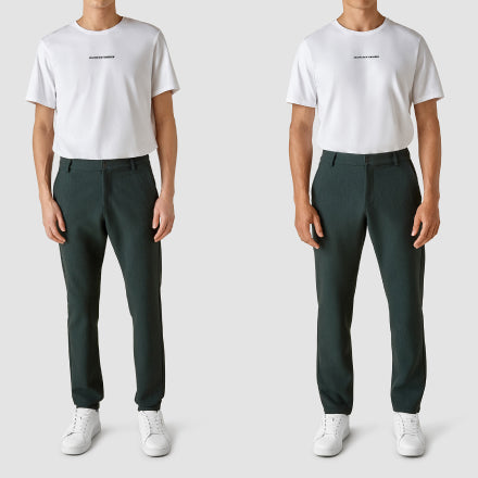 Dessa byxor får dig att känna dig varm och extremt bekväm: Materialet bestående av återvunnen polyester, EcoVero™ viskos, bomull och elastan påminner om vårt Essential-tyg, vilket betyder att du kan förvänta dig 360° stretch och en massa andra fantastiska funktioner och en modern siluett som bidrar till din stilfulla look. Eftersom detta material är lite tjockare passar byxorna perfekt för de lite kyligare dagarna från höst till vår.