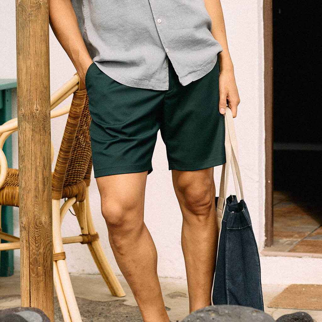I allt för lång tid har shorts varit en förbisedd kategori i mäns garderober. Och det skulle vi gärna vilja ändra på. Precis som när vi ändrade människors idé om vad och hur finbyxor för män bör kännas att ha på sig. Först revolutionerade vi de klassiska byxorna, och nu har vi även en somrig variant, som uppfyller ditt behov att kunna röra dig fritt under varma dagar samtidigt som du ser somrigt välklädd ut. På så vis har vi sett till att sommaren inte längre är en säsong när du måste kompromissa med stil eller komfort.
