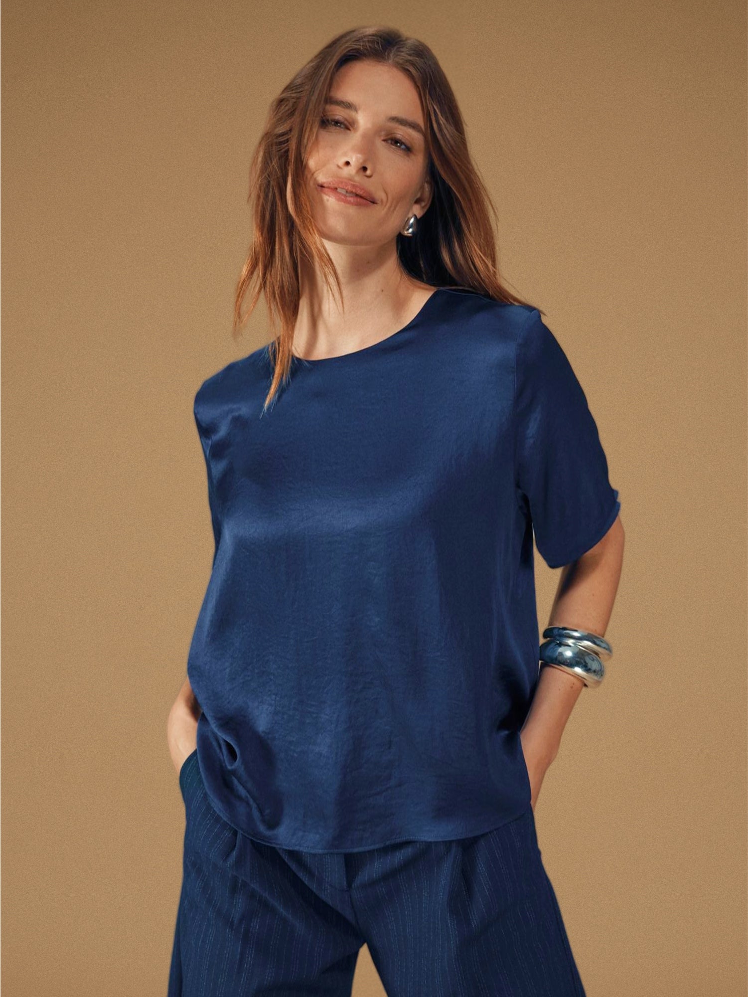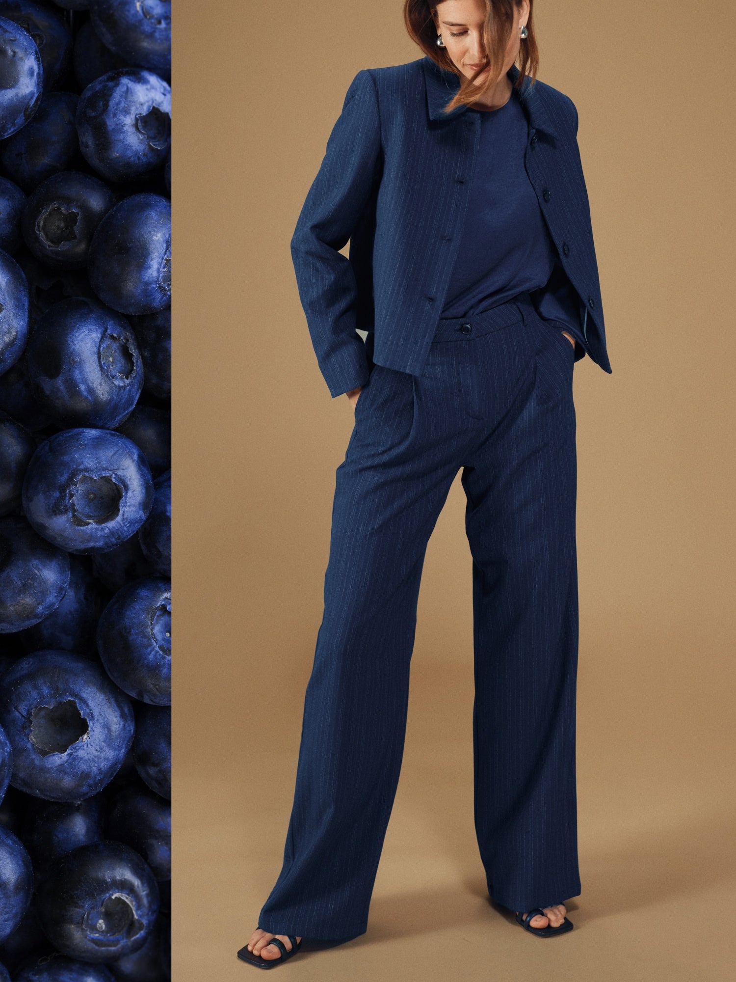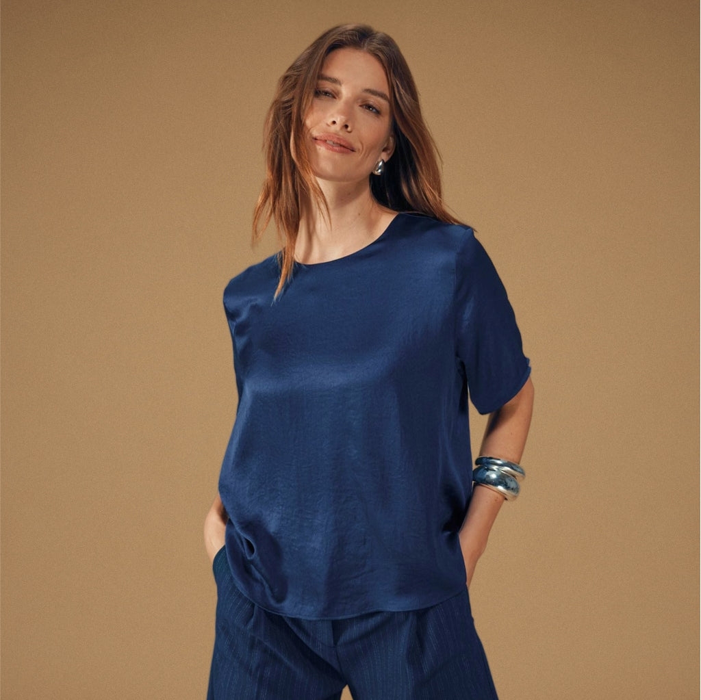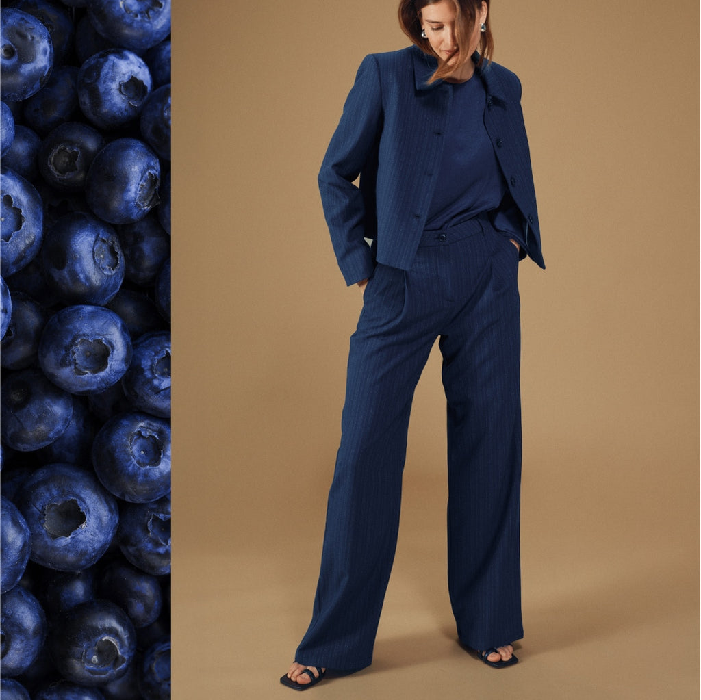 Behöver du en uppklädd outfit för vinterns fester? Avira Blazer och matchande vida Avira Pants är tillverkade i ett slätt, lätt skimrande tyg som fångar ljuset vackert. Kombinera med en mjuk blus som Vienna eller Amara – och du har en hel vinterlook som balanserar elegans och komfort.