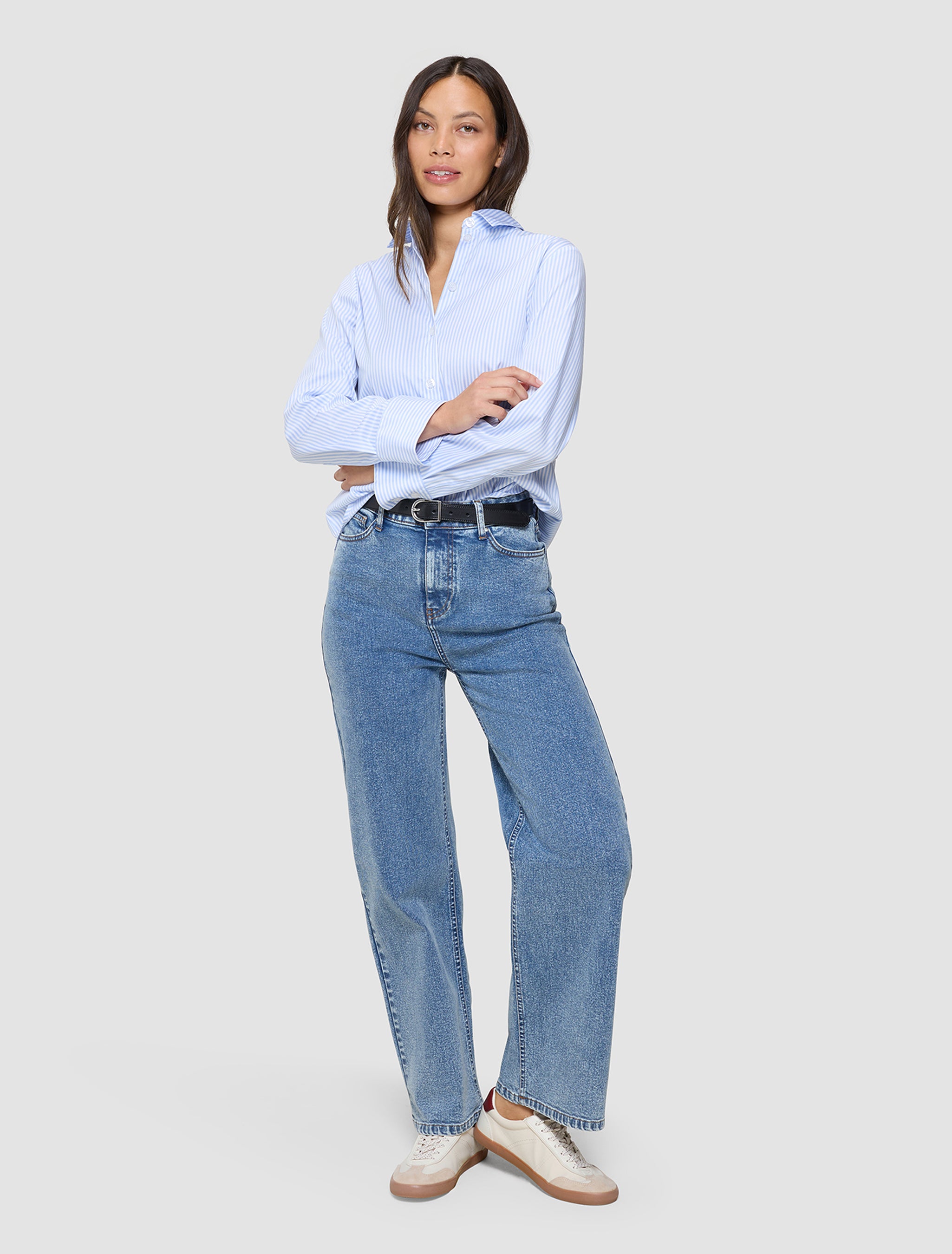 Våra damjeans i straight fit utstrålar en känsla av diskret elegans. De är designade med klassiskt raka ben och finns i flera färger. Oavsett vilken färg du väljer kan du styla dina nya bekväma jeans med en enkel T-shirt och vita sneakers för en avslappnad look eller skapa en mer elegant look med en vit oversized shirt och loafers.