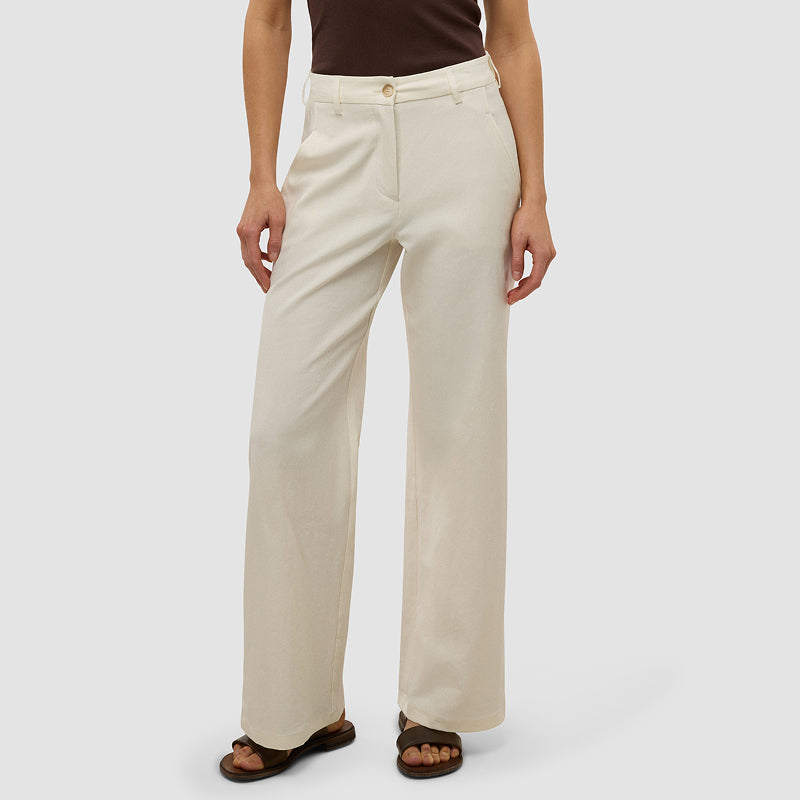 SHAPING NEW TOMORROWs kvinnliga designers har skapat flera passformer inom våra Essential Pants, och det nyaste tillskottet till stammen är Wide Leg Fit, som har en hög midja och extra vidd runt benen. Du kan också hitta våra Tapered og Straight Fits. Alla tre passformer har hög midja, men Straight-passformen har lite extra vidd och ett rakt ben, medan Tapered-passformen är lite lösare runt låren och är mer avsmalnande vid ankeln för en smickrande siluett.