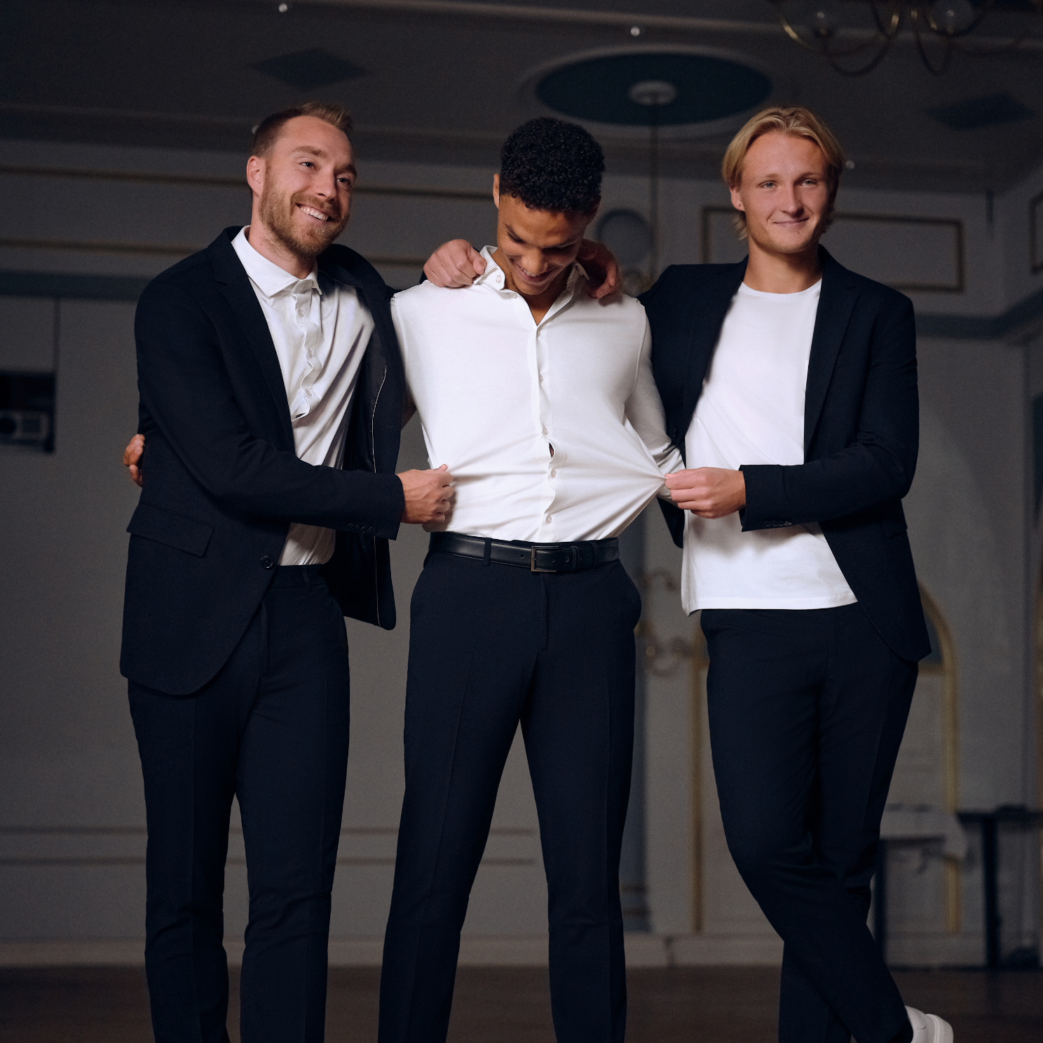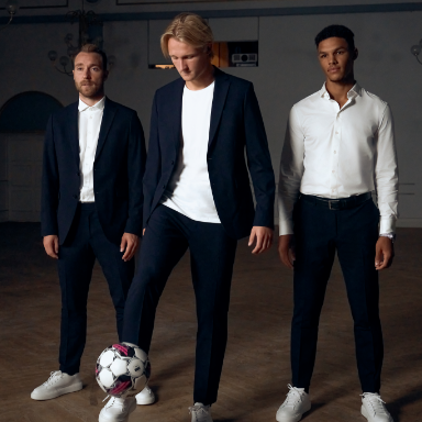 Det danska herrlandslaget har gått in i en ny era, där mänskliga värderingar skapar grunden för toppresultat. Det är en kultur som fokuserar på personen bakom spelaren, en kultur som skapar en sammansvetsad gemenskap – och segrar. Laget lyfter sig som en grupp, men varje enskild spelare får friheten att vara en stjärna i sin roll, oavsett vad den innebär. Det är även detta vi på SHAPING NEW TOMORROW både firar och strävar efter, så vi hoppade av glädje när vi fick möjligheten att klä våra fotbollsherrar för alla deras resor runt om i världen.