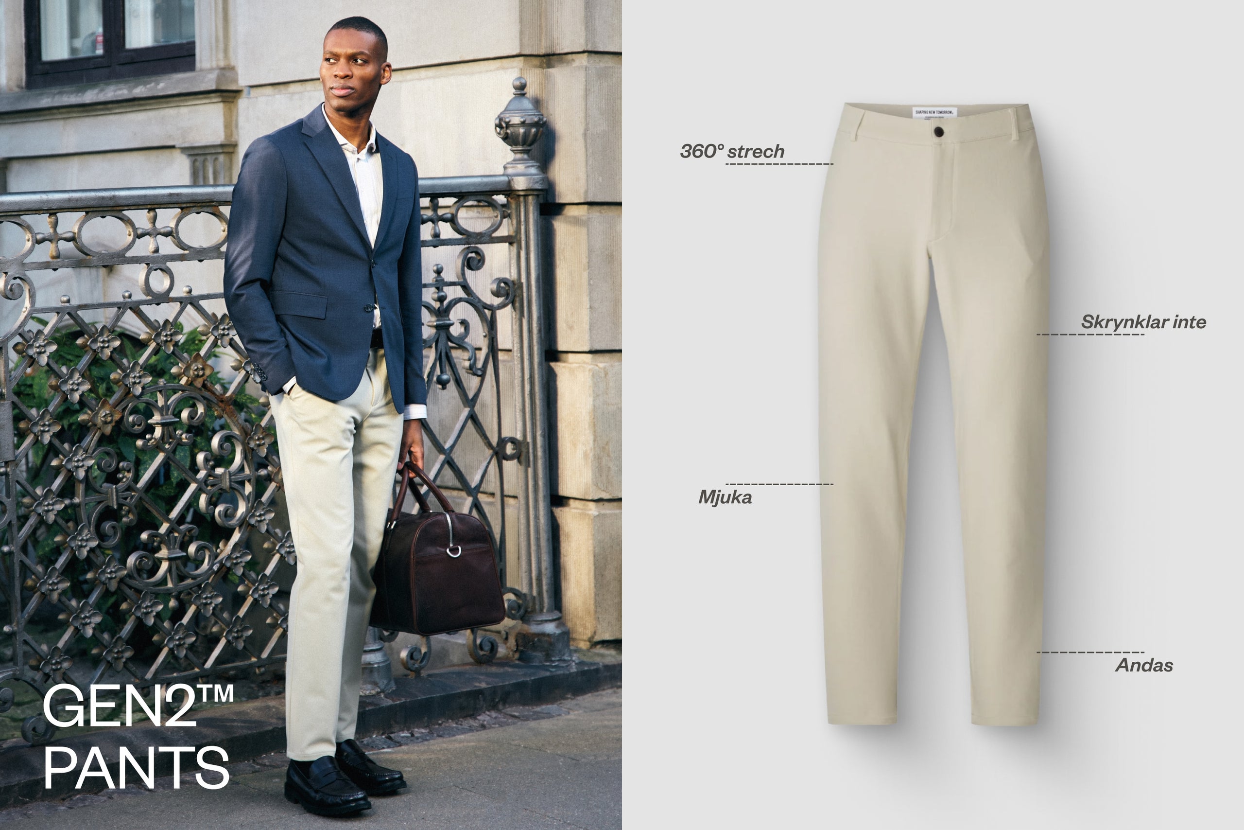 Vi testar allt in i minsta detalj – inte bara i labbmiljö, utan också i verkligheten. Resultatet? Byxor som känns fantastiska, dag efter dag.